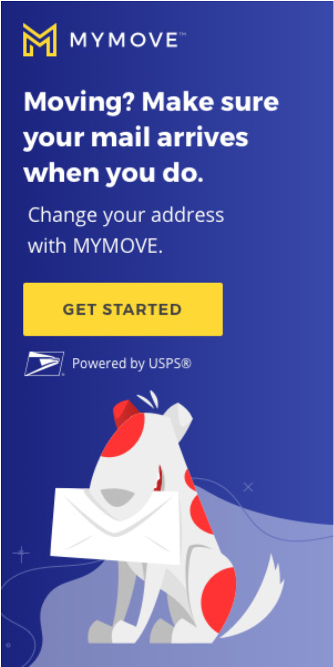 Copy and design to advertise MYCOA (MYMOVE Change of Address) across various platforms (display native, social, & affiliate).